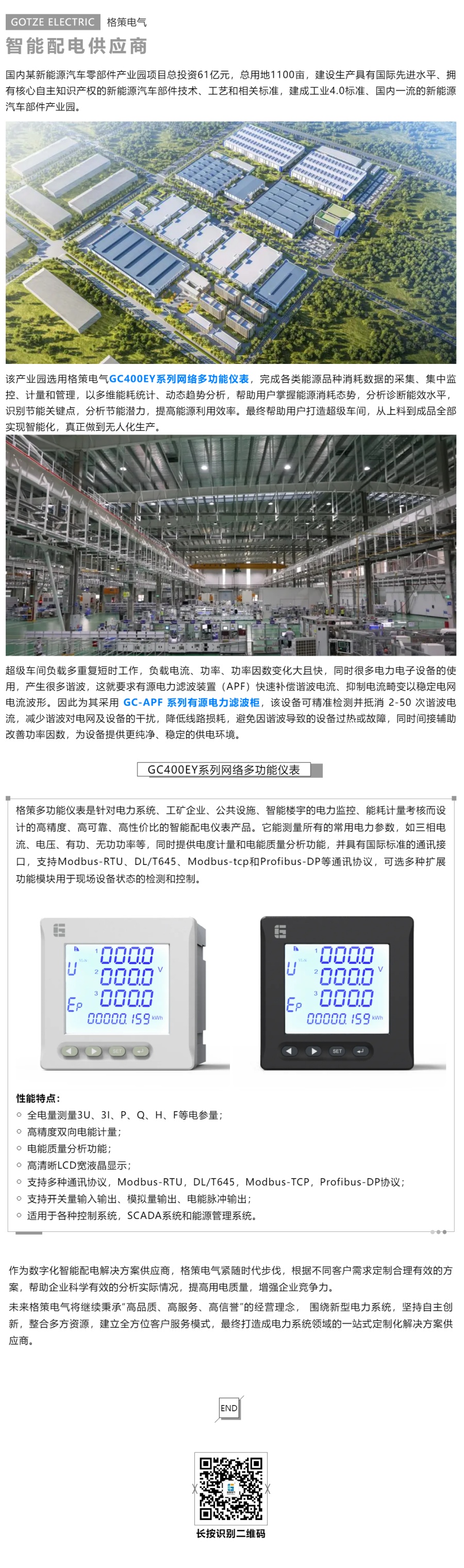 格策电气产品在新能源汽车零部件超级车间项目中的应用